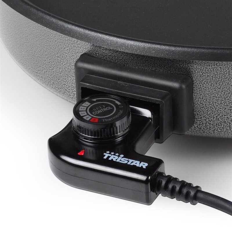 Bereid moeiteloos allerlei gerechten met de Tristar PZ-2964 Elektrische Hapjespan. Met een diameter van 40 cm heb je genoeg ruimte om voor het hele gezin te koken. De vijf instelbare temperatuurstanden, tot wel 280°C, geven volledige controle over de bereiding. Dankzij het krachtige 1500W vermogen is de pan snel op temperatuur, terwijl het praktische ontwerp met geïntegreerde handvatten, een transparante deksel met stoomuitlaat en een afneembaar snoer zorgt voor optimaal gebruiksgemak.