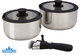 Ervaar de luxe van het premium Annecy M pannenset van Eurotrail. Dit is een stijlvol RVS set met een siliconen rand en afgewerkte glazen deksels met knop. Het pannenset is ideaal voor efficiente opslag dankzij het nestbare ontwerp en de afneembare greep, die zorgt voor een stevige grip en eenvoudig opbergen. Met capsulebodems zijn de pannen geschikt voor alle hittebronnen, inclusief gas, elektrisch, keramisch en inductie. De set bevat pannen van 16x8 en 18x9 cm, met inhoud van 1.25 en 1.5 liter. Een multifunctioneel set voor diverse kookbehoeften.