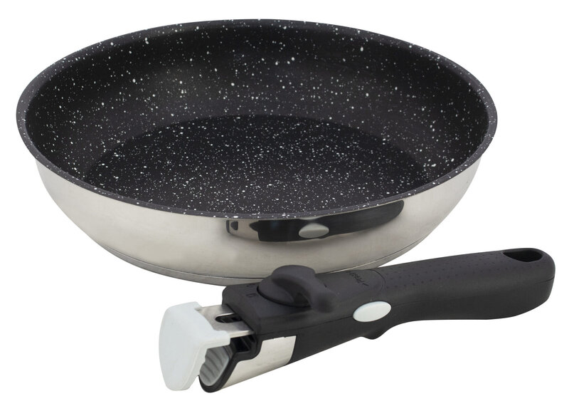 Geniet van moeiteloos koken met de Eurotrail Annecy Premium Braadpan. Deze roestvrijstalen koekenpan heeft een duurzame keramische antiaanbaklaag die niet alleen slijtvast is, maar ook bijzonder praktisch in gebruik. De capsulebodem zorgt voor een optimale warmteverdeling en maakt de pan geschikt voor alle warmtebronnen, waaronder inductie. Combineer de pan met de los verkrijgbare afneembare handgreep voor extra gebruiksgemak en flexibiliteit in de keuken of op de camping (de pan wordt geleverd exclusief de afneembare handgreep).