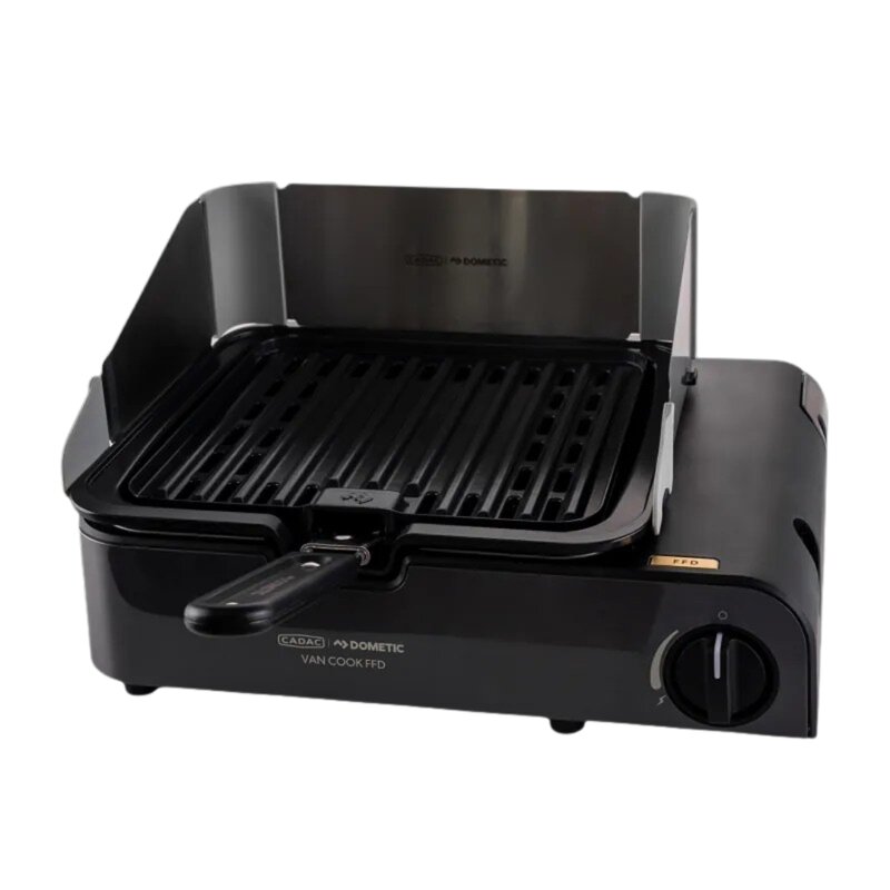Ga goed voorbereid op pad met de Cadac Van Cook FFD Combo kooktoestel. Deze compacte en lichtgewicht gasbarbecue is ideaal voor kampeervakanties en vanlife avonturen. Dankzij het Flame Failure Device voor extra veiligheid kook je met een gerust gevoel, terwijl de magnetische aansluiting voor een gascartridge en de automatische ontsteking zorgen voor snel en eenvoudig gebruik. Het toestel wordt compleet geleverd met pandrager, BQQ rooster, percolatorhouder en deksel. Het geïntegreerde wind- en spatscherm maakt koken hygiënisch en stabiel, zelfs bij wind. Met de handige opbergtas neem je hem moeiteloos overal mee naartoe.