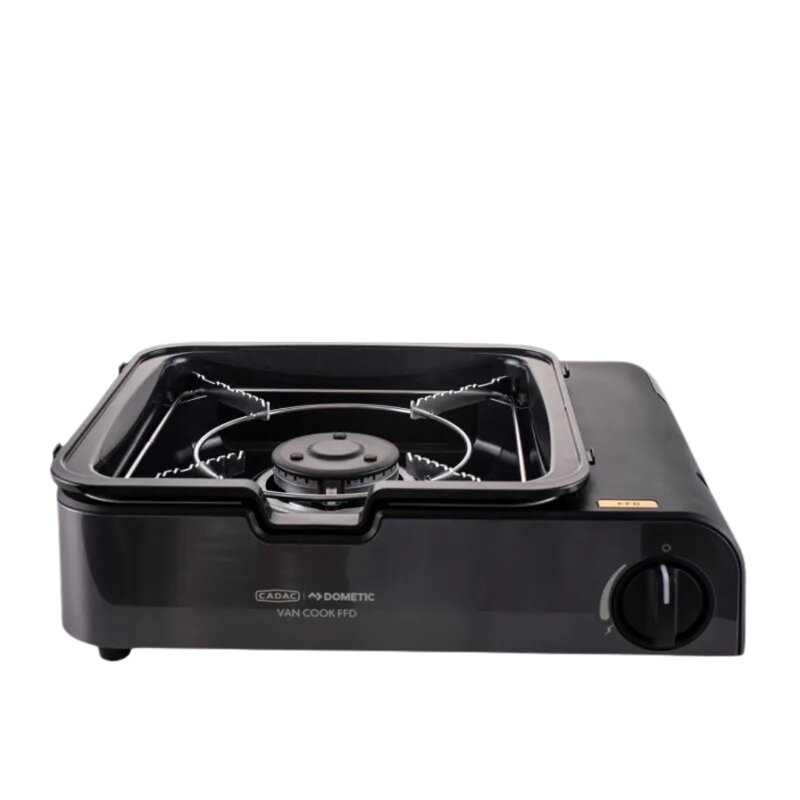 Ervaar ultieme vrijheid tijdens het koken met de Cadac Van Cook FFD kooktoestel. Dit compacte en lichtgewicht kooktoestel is perfect voor kampeervakanties en vanlife trips. Het geïntegreerde Flame Failure Device zorgt voor extra veiligheid, terwijl de magnetische aansluiting voor een gascartridge en de automatische ontsteking het gebruik snel en eenvoudig maken. Je ontvangt het toestel compleet met pandrager, BQQ rooster, percolatorhouder en deksel. Dankzij het wind- en spatscherm kook je hygiënisch en stabiel, ook bij minder gunstige weersomstandigheden. Met de meegeleverde opbergtas neem je hem gemakkelijk overal mee naartoe.