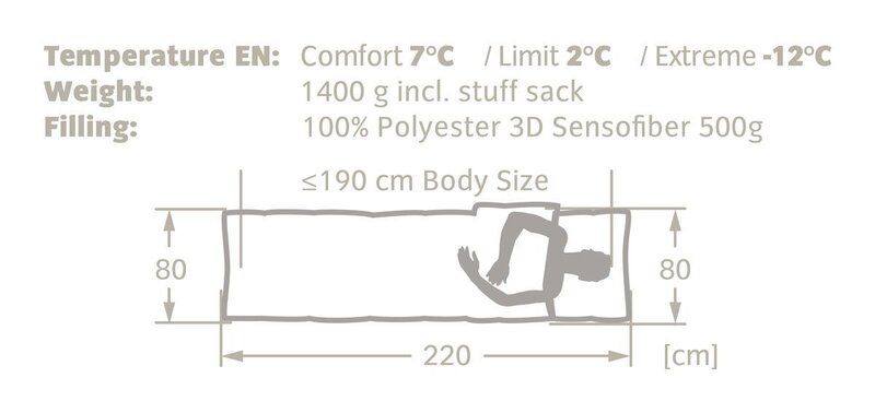 Deze Vaude Navajo 500 II slaapzak is geschikt voor 2 seizoenen, van late lente tot vroeg in de herfst. Door de rechthoekige dekenvorm is de slaapzak veelzijdig inzetbaar. Zo kan de slaapzak ook gebruikt worden als dekbed of warme poncho. De vezelvulling biedt isolering, kan zelfs in vochtige toestand verwarmen en is zeer goed ademend. Het hoofdgedeelte heeft een trekkoord, waarmee een capuchon gevormd kan worden op koele nachten. Het buitenmateriaal is licht, voelt aangenaam zacht op de huid en zal ook niet plakkerig aanvoelen.