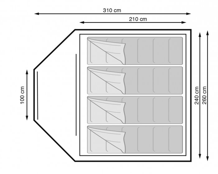 De Eurotrail Ontario BTC 4-Persoons Koepeltent biedt volop ruimte en comfort voor een gezinskampeervakantie. Het grote voorportaal met vensters en een vast grondzeil houdt water en vuil buiten, terwijl de binnentent voorzien is van een muskietengaasdeur en handige opbergvakken voor extra organisatie. Het voorportaal biedt voldoende ruimte voor bagage of kookspullen, waardoor je alles binnen handbereik hebt. De tent wordt geleverd met haringen, scheerlijnen en een stevige draagtas, maar voor extra stevigheid raden we aan spijkerharingen en een Eco-doek aan te schaffen, vooral als je kampeert op harde grond.