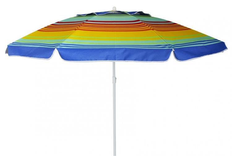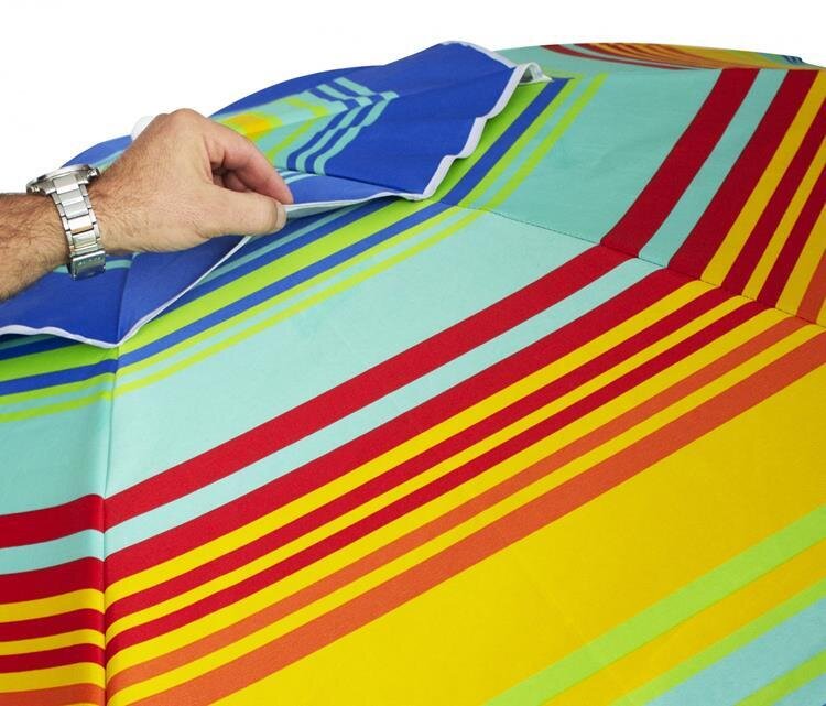 Breng kleur en comfort naar het strand met de Kantelbare Strandparasol Multicolour van Eurotrail. Dit is dé parasol die uitstraling combineert met optimale UV-bescherming. Dankzij het stevige polyester doek met zilveren UV-block coating (UPF 50+) zit je veilig uit de zon, terwijl het kantelbare frame van 195 cm zorgt voor flexibele schaduw op elk moment van de dag. Met een diameter van 180 cm en een handige draagtas is deze parasol ideaal voor onderweg en makkelijk mee te nemen.