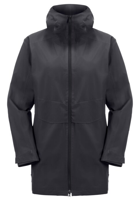 Wanneer je kiest voor de Mainkai Long Jacket kan je met een gerust hart op pad gaan. Deze Jack Wolfskin dames jas, van gerecyclede stof Texapore Core Pro Stretch, biedt bescherming bij alle verschillende weersomstandigheden. Hierdoor ben je ook ingedekt wanneer je de regenbui bijvoorbeeld niet verwacht had. De jas heeft een waterkolom van 20.000 mm en een hoog ademend vermogen. Deze lichtgewicht jas kan makkelijk in een koffer of rugtas opgeborgen worden, doordat het gewicht zo klein mogelijk gehouden is. De capuchon is verstelbaar, wat betekent dat er zelf gekozen kan worden om de capuchon te dragen of niet. En de verschillende zakken bieden een mooie, betrouwbare opbergplek voor items zoals je telefoon en betaalkaarten.