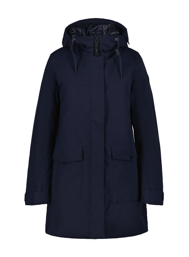 Een echte veelzijdige jas voor in de winter. De Icepeak Alpena jas is onderdeel van de isolerende jassen collectie van Icepeak. Deze dames jas heeft een verstelbare capuchon, verstelbare manchetten en twee voorzakken met rits. Met de tweerichtingsrits aan de voorkant kan je de bewegingsvrijheid aanpassen, zonder dat dit weg hoeft te nemen van de warmte en de isolering. Dankzij de combinatie van de verstelbare taille en de verstelbare zoom kan de pasvorm worden aangepast zodat de jas comfortabel zit en goed aansluit. De naden van de jas zijn getapete, wat betekent dat de jas perfect waterdicht is. Met een waterkolom van 10.000 mm en een hoog ademend vermogen kan je er zeker van zijn dat je je altijd droog en comfortabel voelt wanneer je de Alpena jas draagt.