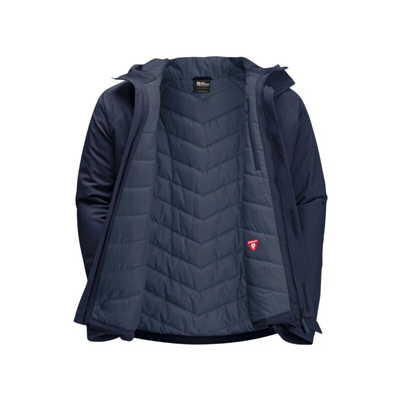 Een klassieke basic, maar wel geheel functionele jas. De Troposphere jas van Jack Wolfskin is de ideale jas voor sportieve, winterse activiteiten. Dankzij de Texapore Pro-technologie is de winterjas goed wind- en waterdicht. Daar tegenover heeft de jas ook een hoog ademend vermogen. De jas heeft ook een hoge isolerende werking, vanwege de Primaloft Black Rise-vulling. Met de ventilatieritssluitingen kan je ervoor zorgen dat er meer waterdamp naar buiten kan dan door het ademende membraan van de jas. Verschillende zakken geven je genoeg ruimte om kleine items op te bergen of om je handen te warmen.