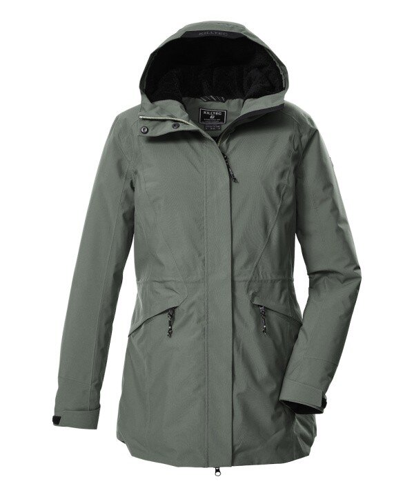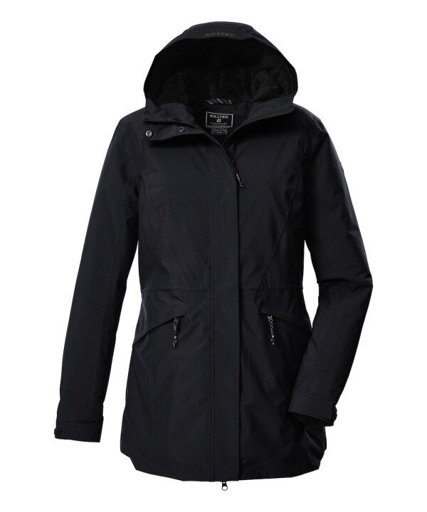 Trotseer elk weertype met de Killtec KOW 19 dames jas, een functionele parka die optimale bescherming biedt dankzij de waterdichte afwerking (10.000 mm waterkolom), getapete naden en winddichte constructie. De jas is ademend (3.000 g/m²/24 h) en voorzien van een verstelbare capuchon, taille en manchetten voor een perfecte pasvorm. Met een verborgen 2-weg ritssluiting met kinbescherming en een milieubewuste, PFC-vrije impregnering is deze parka zowel praktisch als verantwoord.