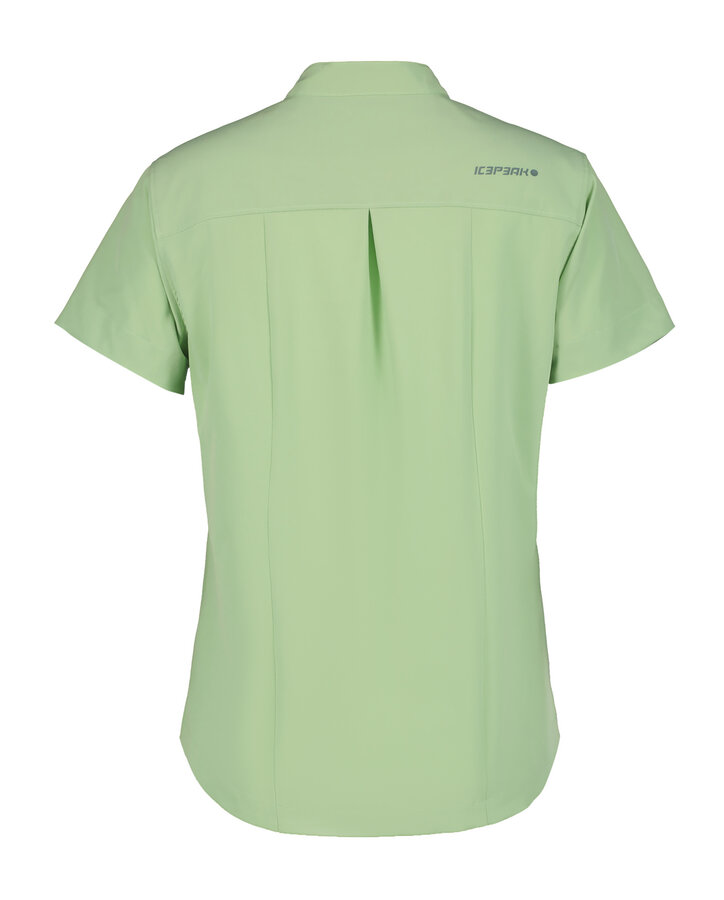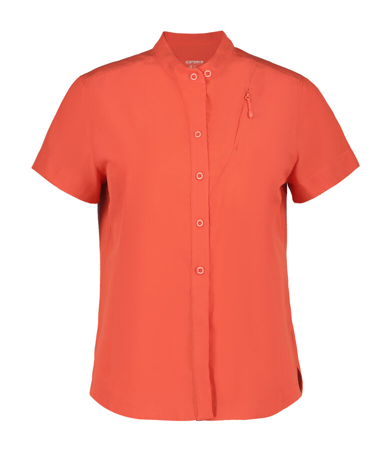Een echte zomerse Icepeak blouse. Het stretchmateriaal van de Bretten blouse zorgt voor genoeg bewegingsruimte tijdens de warme dagen. Ook is de stof sneldrogend en ademend, wat extra comfort biedt wanneer de blouse gedragen wordt. De blouse heeft knopen aan de voorkant en korte mouwen. Een klein verborgen zakje aan de voorkant biedt de mogelijkheid om een betaalpas of contant geld mee te dragen.