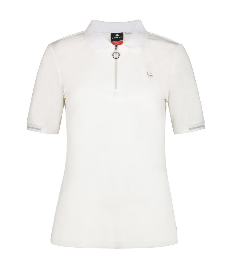 Deze damespolo van Luhta heeft een sportieve uitstraling, met een decoratieve ritssluiting aan de voorkant en een ietwat langere korte mouw. Deze langere mouwen zijn ideaal voor mensen die net een beetje extra bedekking willen, zonder de luchtigheid van een korte mouwen shirt op te geven. De voorkant heeft een halve ritssluiting, waarvan je zelf kan bepalen of je deze open of dicht wilt dragen. De Aerola polo is gemaakt van een sneldrogend en rekbaar materiaal. Het polyester materiaal voelt zacht op de huid.