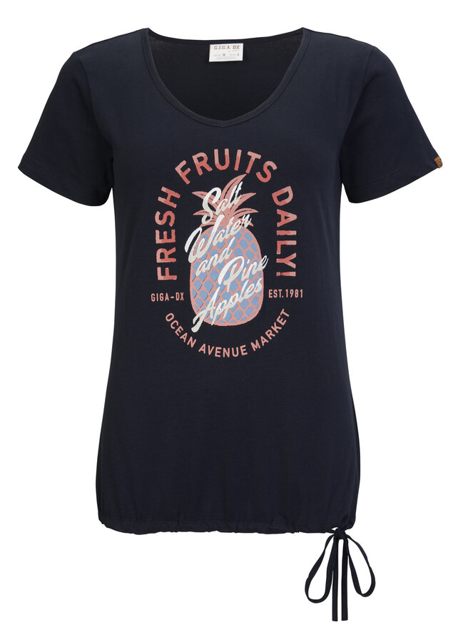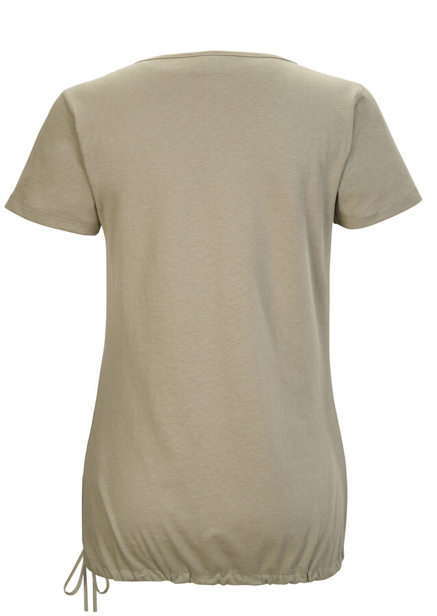 Dit Killtec shirt heeft een zeer vrouwelijke uitstraling, mede door de ruches met strikjes aan de zoom. Het GS 112 T-shirt is gemaakt van biologisch katoen en voelt zacht aan op de huid. De losse, comfortabele pasvorm kan worden aangepast dankzij de verstelbare zoom, welke verstelt kan worden door de strik aan de zoom. Dit damesshirt heeft een zomerse uitstraling, mede dankzij de print op de voorkant, een ronde hals en korte mouwen. Combineer dit shirt met een korte broek of rok voor de ideale zomerse outfit.