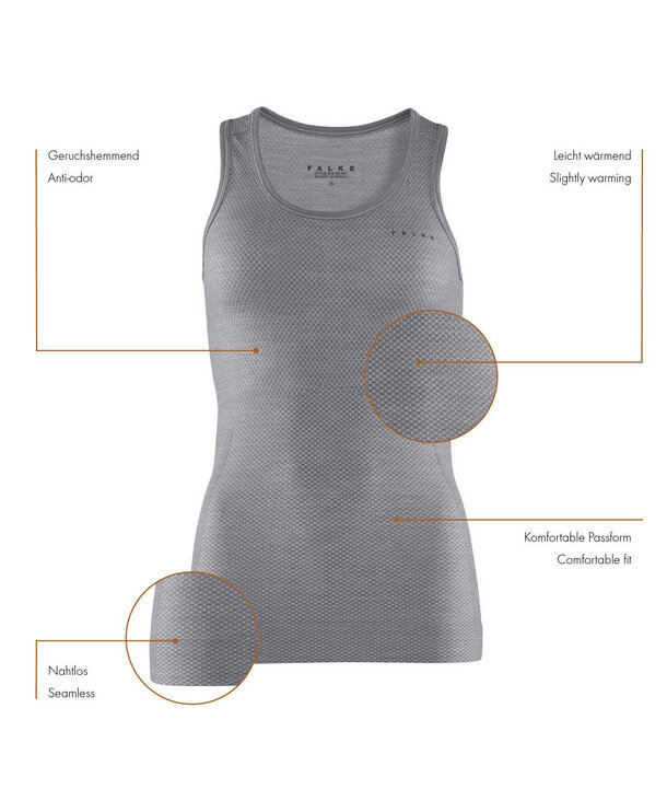 Deze dames tanktop van Falke is gemaakt van natuurlijke materialen, zoals merinowol, om bescherming te bieden bij zowel warme als koude buitentemperaturen. Deze materialen zorgen ervoor dat dit Wool-Tech Light shirt lichaamstemperatuur reguleert en onaangename geurtjes niet vasthoudt. De tanktop heeft een ronde jas en ietwat bredere schouderbanden. Dankzij de perfecte pasvorm wordt bewegingsruimte en een hoog draagcomfort gegarandeerd. Ook zal de pasvorm ervoor zorgen dat dit thermo kledingstuk zo dicht mogelijk op de huid ligt.