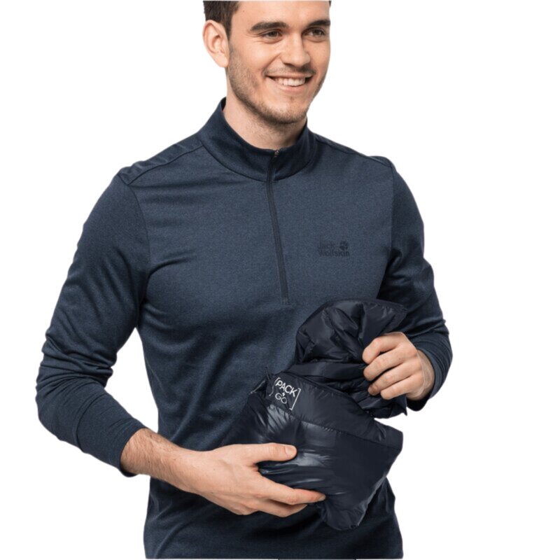 Niet alleen is deze Jack Wolfskin bodywarmer volledig functioneel, hij is ook erg minimalistisch. Deze lichtgewicht Pack & Go Bodywarmer is winddicht, waterafstotend en zeer goed ademend, dit allemaal door het Texashield Ecosphere Pro-materiaal. Dankzij de donsvulling ervaar je optimale isolatie, terwijl dit de bodywarmer niet verzwaard of groter maakt. De bodywarmer kan makkelijk klein worden ingepakt in een van de twee heupzakken. Verschillende reflecterende details zorgen voor extra veiligheid en zichtbaarheid.