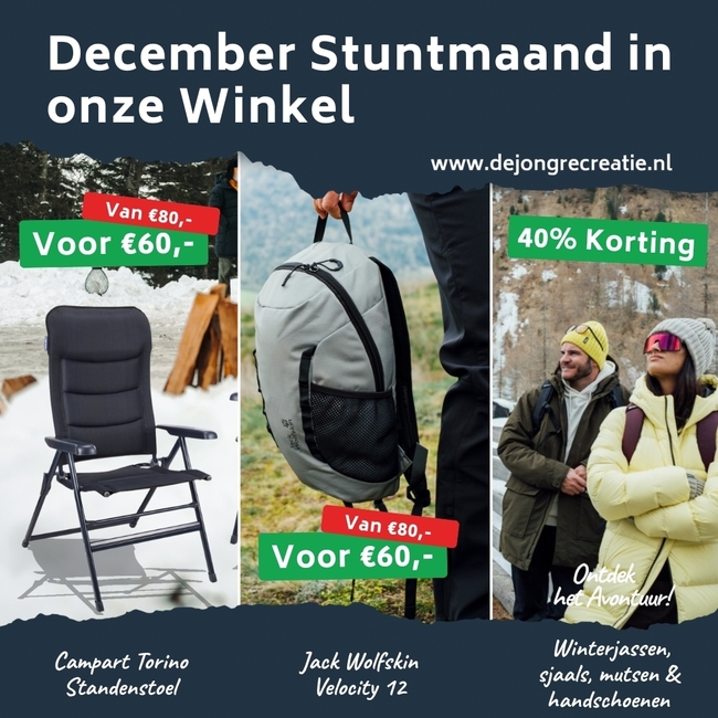 Bij DE JONG kampeer & Recreatie in Hillegom - De Zilk, vindt u een uitgebreid assortiment kampeer en outdoor artikelen. Kom naar onze winkel en maak uw volledige uitrusting in één keer compleet. Wij voorzien u graag van een eerlijk advies.