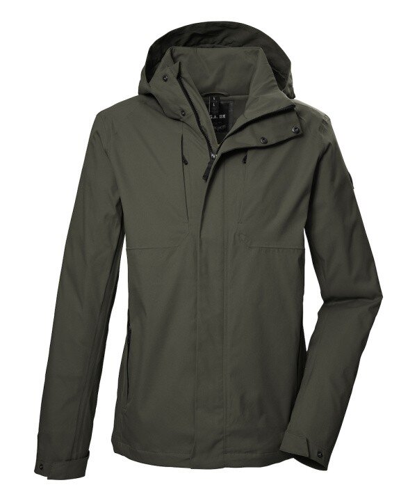 Blijf beschermd tegen de elementen met de GS 59 heren jas van Killtec. Deze lichtgewicht, waterdichte jas is perfect voor wisselende weersomstandigheden. Gelaste naden en een waterkolom van 10.000 mm zorgen ervoor dat je droog blijft, terwijl het ademende en winddichte materiaal comfort biedt tijdens actieve dagen. Een verstelbare, afritsbare capuchon en verstelbare manchetten en zoom zorgen voor een persoonlijke en aanpasbare pasvorm. Met verschillende ritszakken en een rits met kinbescherming heb je altijd alles binnen handbereik en blijf je altijd comfortabel.