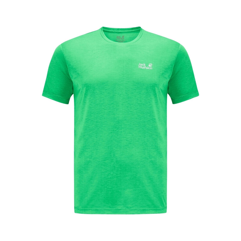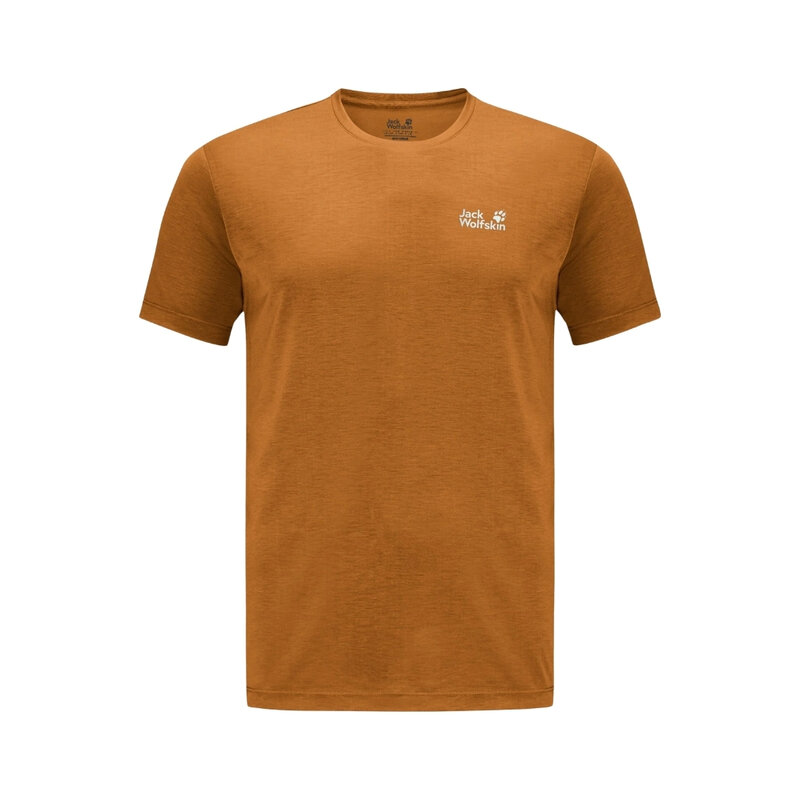 Blijf koel en fris met het Vonnan heren T-shirt van Jack Wolfskin. Het sportieve T-shirt is gemaakt van Texadri-materiaal, een ademende en vochtregulerende stof die snel droog en geurtjes voorkomt. Het subtiele Jack Wolfskin-logo geeft het T-shirt een herkenbare, sportieve uitstraling, zodat er zowel comfortabel als stijlvol uitziet tijdens al je activiteiten.