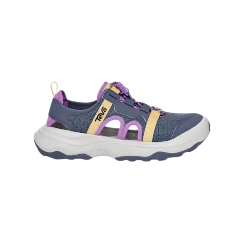 Een nieuw model vanuit Teva. De klassieke sandaal met dichte neus, maar dan in een modern en fris jasje. De Outflow CT zijn watervriendelijke schoenen. Het voetbed is voorgevormd, uitgerust met sneldrogend mesh en elastische veters. De schoenen zijn goed geschikt voor lichte wandelingen en verschillende wateractiviteiten zonder dat deze te zwaar worden om comfortabel te kunnen dragen. Het gerecyclede polyester voelt zacht op de huid en is behandeld met een geur neutraliserend middel. De veters zijn gemaakt van elastisch koord, wat de voet goed op zijn plaats moet houden. De rubberen buitenzool biedt je genoeg grip.