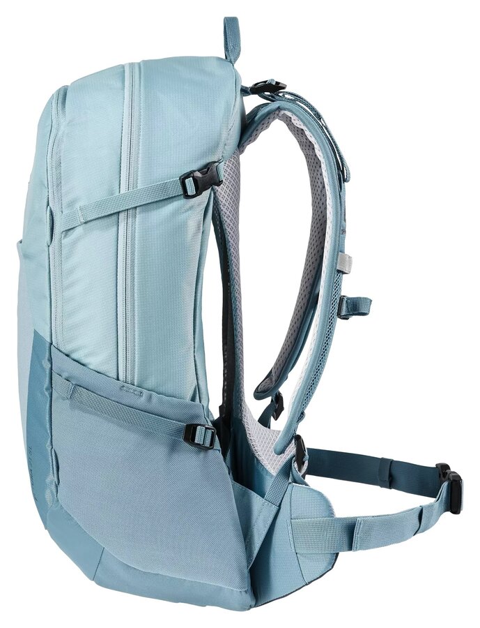 Ervaar zoveel mogelijk draagcomfort met deze Future 21 SL rugzak van Deuter. Speciaal aangepast op de vrouwelijk pasvorm is dit de ideale keuze, zowel in het dagelijks leven als tijdens wandeltochten. De kortere ruglengte, smallere schouderbanden en conisch gevormde heupvinnen sluiten goed aan op het lichaam en bieden ondersteuning tijdens het dragen. Het Aircomfort rugsysteem zorgt voor goede ventilatie en een bevordering van de bloedsomloop. De tas heeft ook twee elastische zijvakken, een afneembare regenhoes en een binnen vak waarin waardevolle spullen veilig kunnen worden opgeborgen. Het voorste vak is voorzien van een organisatie systeem.
