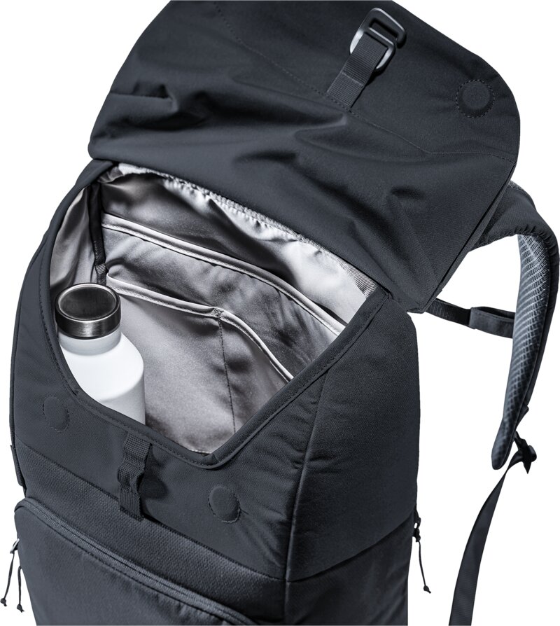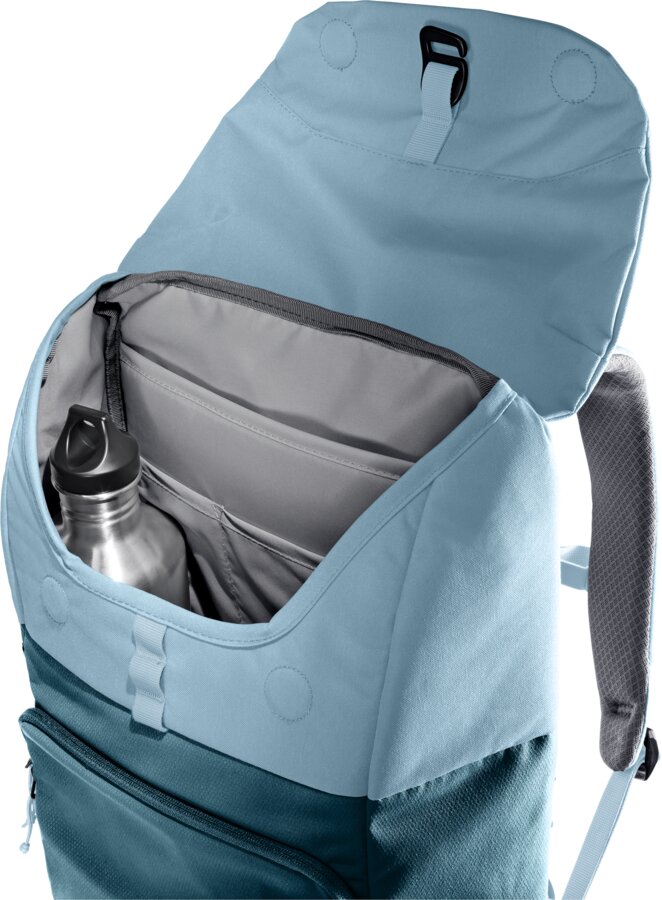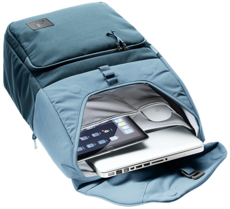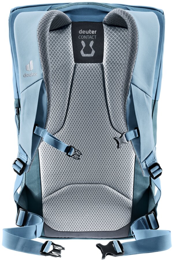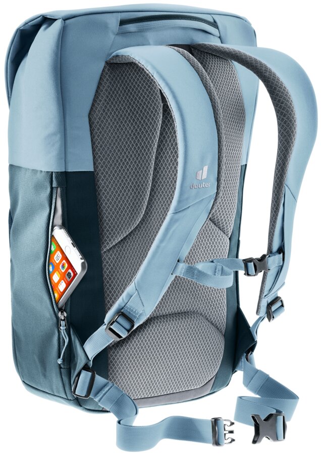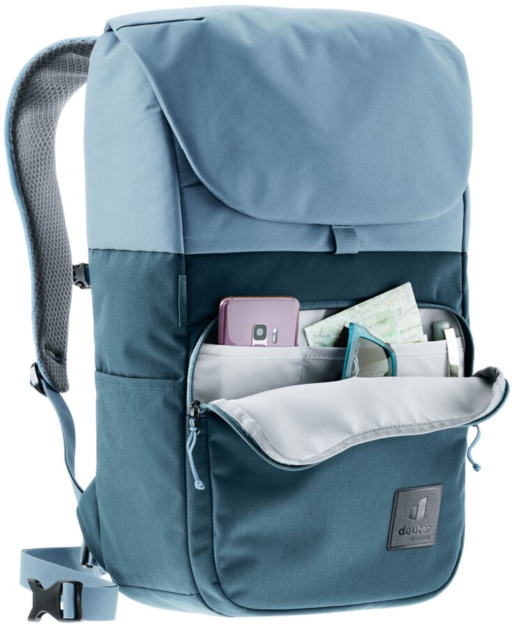 Een moderne Deuter rugzak die duurzaam geproduceerd is, er sportief uitziet en stijlvol gecombineerd kan worden. Deze UP Sydney rugzak is perfect voor naar het werk en universiteit, maar kan ook comfortabel gebruikt worden tijdens wandeltochten. De tas heeft een slimme indeling en is voorzien van een magneetsluiting in de deksel. Om de rugtas met extra zekerheid te kunnen gebruiken kan de bovenkant ook dicht worden gemaakt met aluminium haken. De tas is voorzien van een vak voor een laptop tot 15 inch. De tailleriem is verwijderbaar en de borstgordel kan gedragen worden naar eigen wens gedragen worden.