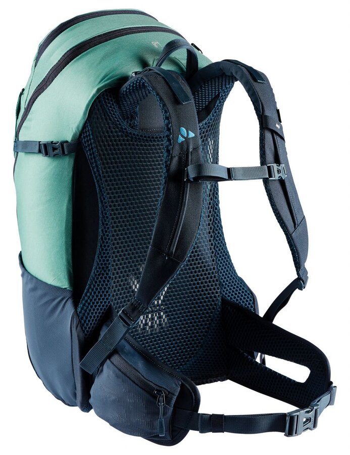 De Tacora 22 is een compacte, volledig functionele damesrugzak om mee te nemen op stadsavonturen en wandeltochten. Deze Vaude rugzak biedt meer dan voldoende ruimte voor verschillende benodigdheden en heeft een handige vakindeling. De rugzak beschikt over een speciaal vak voor kaarten en heeft een steekzak voor een tablet. In de mesh zakken aan de zijkant kan een drinkfles geplaatst worden, evenals andere accessoires. Het ergonomische ontwerp, met gepolsterde schouderbanden, garandeert een comfortabele pasvorm zonder pijnlijke drukplekken. Het aeroflex 3D-rugsysteem zorgt voor uitstekende ventilatie en stabiliteit. Wandelstokken kunnen met gemak aan de buitenkant van de tas worden vastgemaakt en de bijgeleverde regenhoed dient niet alleen als regenbescherming, maar kan ook als opbergtas voor natte of vieze kleding worden gebruikt.