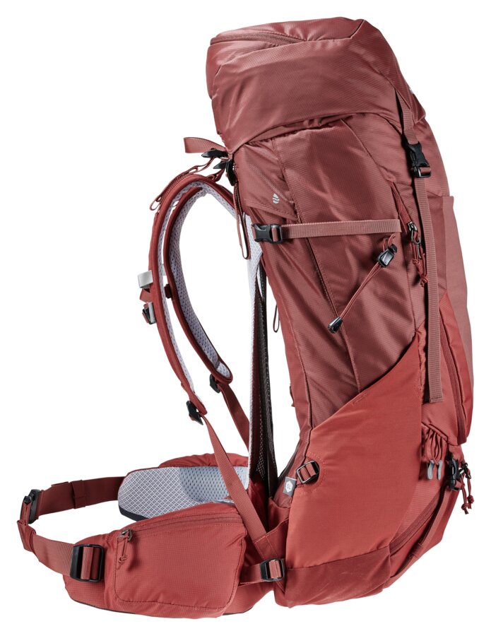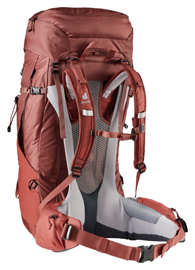 De Futura Air Trek trekkingrugzak is ideaal voor langeafstandswandelingen. Deze 45 liter rugzak van Deuter biedt namelijk maximaal comfort dankzij het verstekbare VariSlide-rugsysteem. Hiermee kan de rugzak aan iedere lichaamslengte aangepast worden. DE VariFlex-heupvinnen zijn voorzien van ergonomische inzetstukken, wat het draagcomfort aanzienlijk verhoogt. Met het Aircomfort Sensic rugsystem, dat uit mesh bestaat, blijf je goed geventileerd tijdens het wandelen. Om de opbergruimte zo groot mogelijk te houden is de rugzak voorzien van een grote voorvaktoegang, extra zakken aan de zijkant en een deksel welke in hoogte verstelbaar is (+10 liter). De rugzak beschikt ook over een regenhoes, zakken voor eventuele natte kleding en een SOS-label.